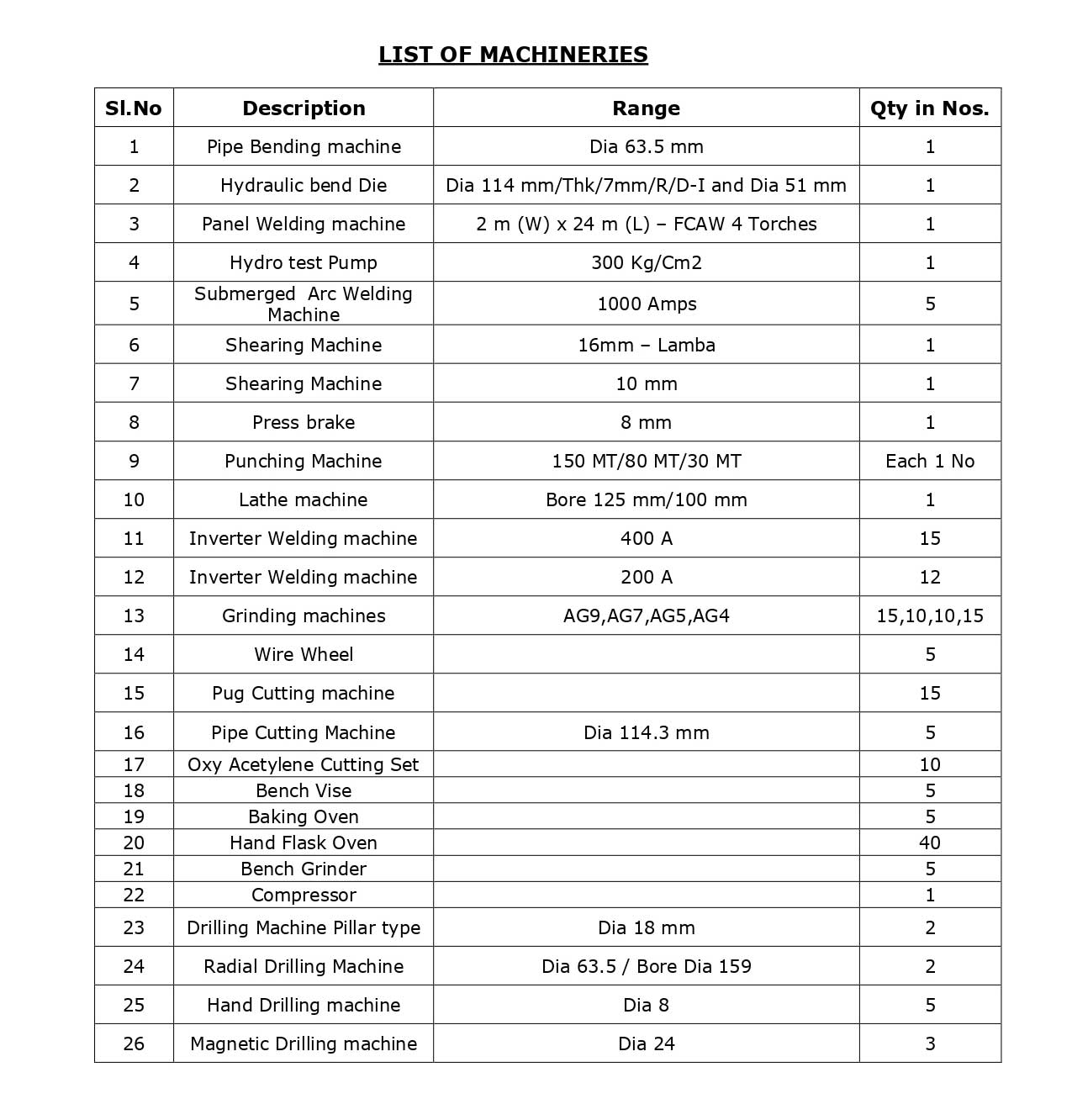 Machineries